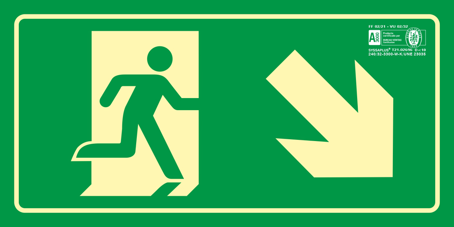 - Diseño: Flecha direccional hacia la derecha que indica claramente el camino hacia la salida de emergencia.